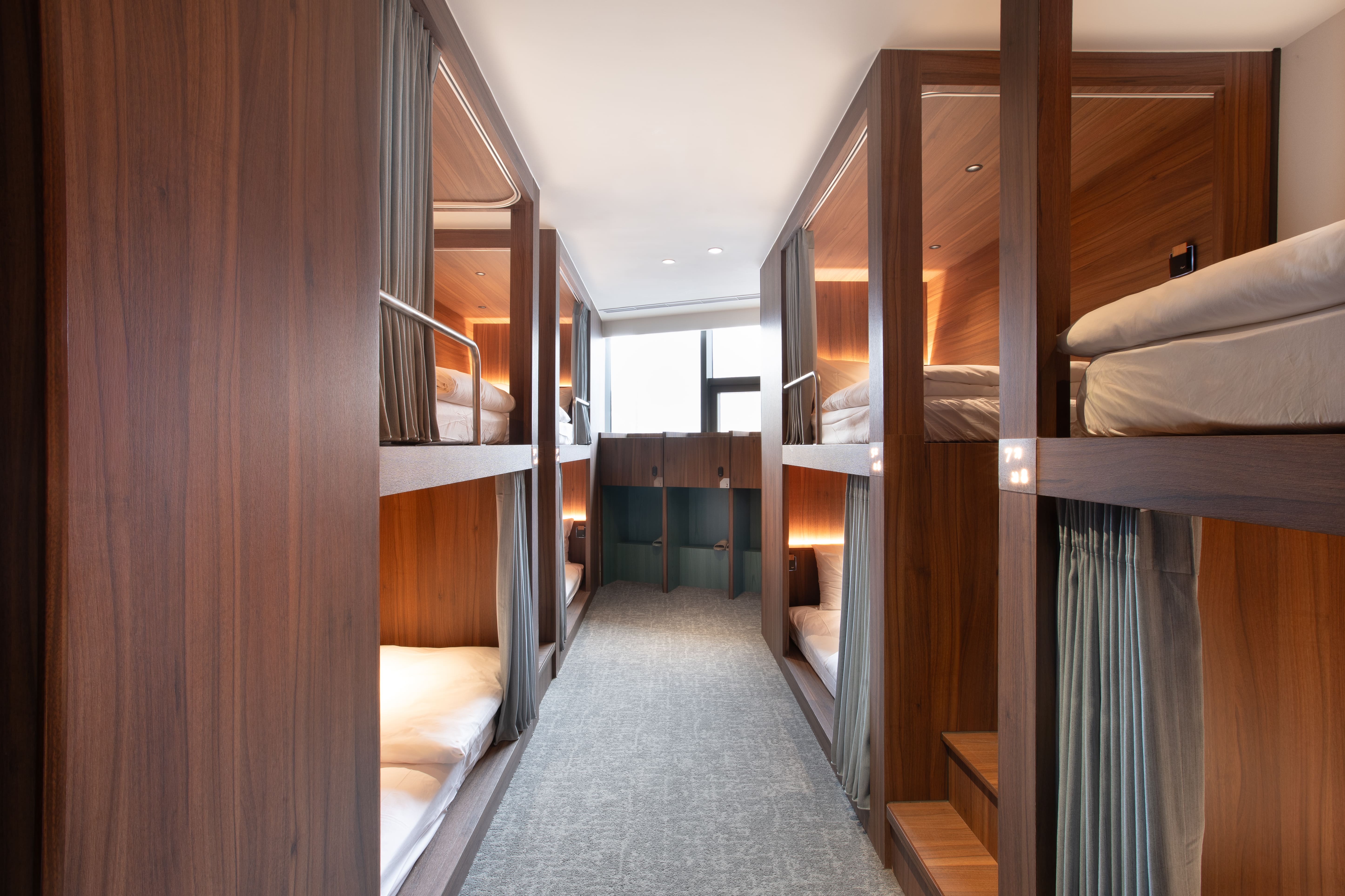 A shared space thoughtfully designed for female travelers. Each bunk is equipped with a privacy curtain, reading light, and a personal storage locker. The bathroom area is separate, allowing you to enjoy a moment of privacy and relaxation during your journey.
