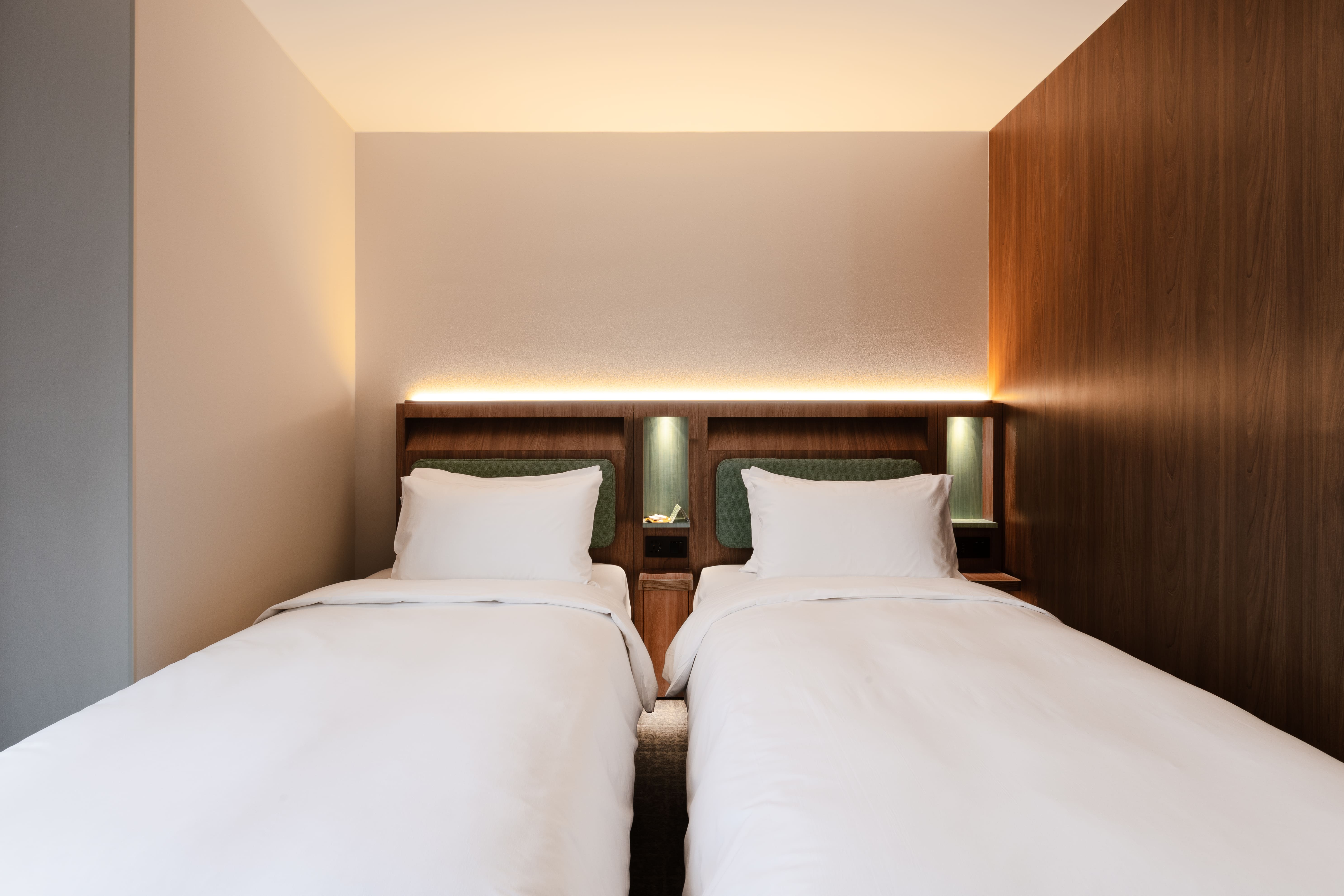 With two double beds, this room is ideal for families or groups of friends traveling together. Soft wood tones and low-saturation colors create a calm and steady atmosphere, like a treehouse tucked within the city, offering a quiet refuge beyond the bustle.