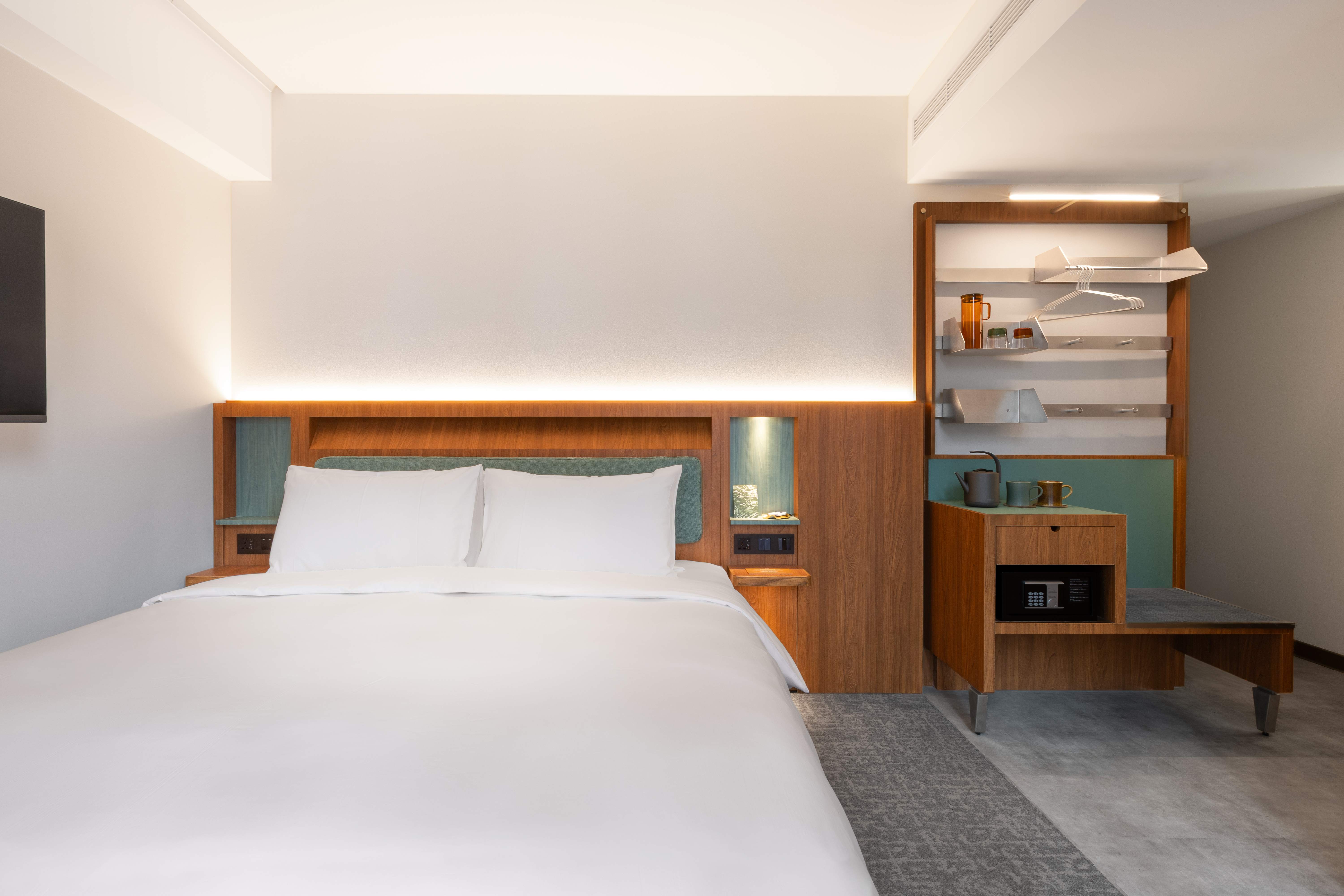 ゆとりある空間が、滞在に穏やかな呼吸のリズムをもたらします。カップルでのご利用や長期滞在、日常にささやかな儀式感を求める方に適した客室です。静かな色調と自然なテクスチャーが空間全体を包み込み、室内で過ごす一瞬一瞬が深呼吸のように感じられます。